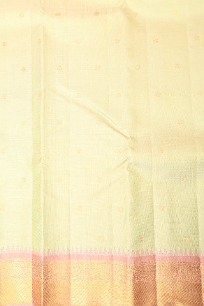 Be the first to review “Kanchipuram Silk In Pista Green With Korvai Temple Border”
