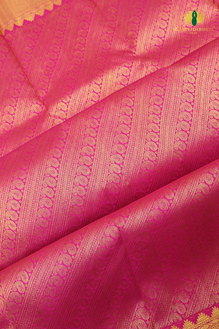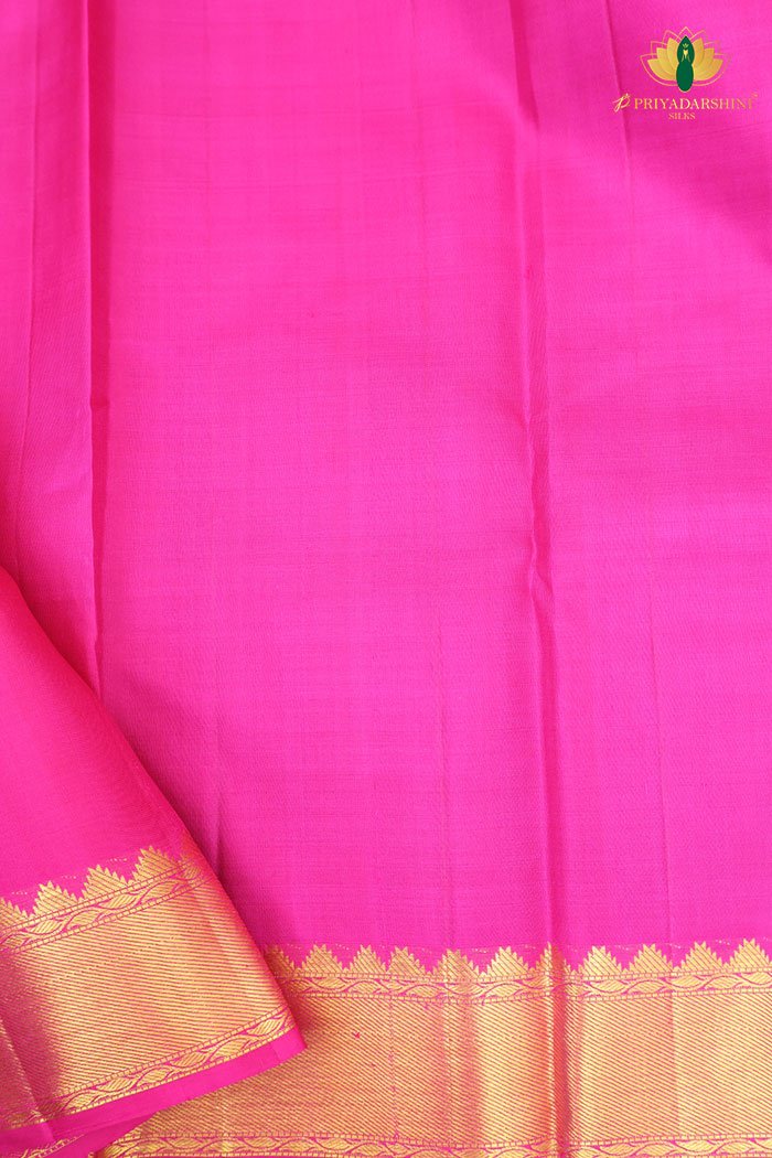 This exquisite Kanchipuram silk saree features a rich purple body woven with elegant elephant butta motifs, symbolizing strength, wisdom, and prosperity. The saree is beautifully finished with a vibrant pink border that adds contrast and enhances its traditional appeal. Crafted from pure Kanchipuram silk with fine zari detailing, it showcases the timeless artistry and durability the weave is known for. Ideal for weddings, festive occasions, and cultural celebrations, this saree pairs perfectly with gold or temple jewellery for a majestic ethnic ensemble.