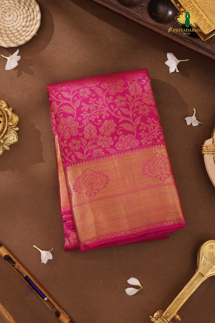Kanchipuram Silk In Rani Pink With Meenakari Work