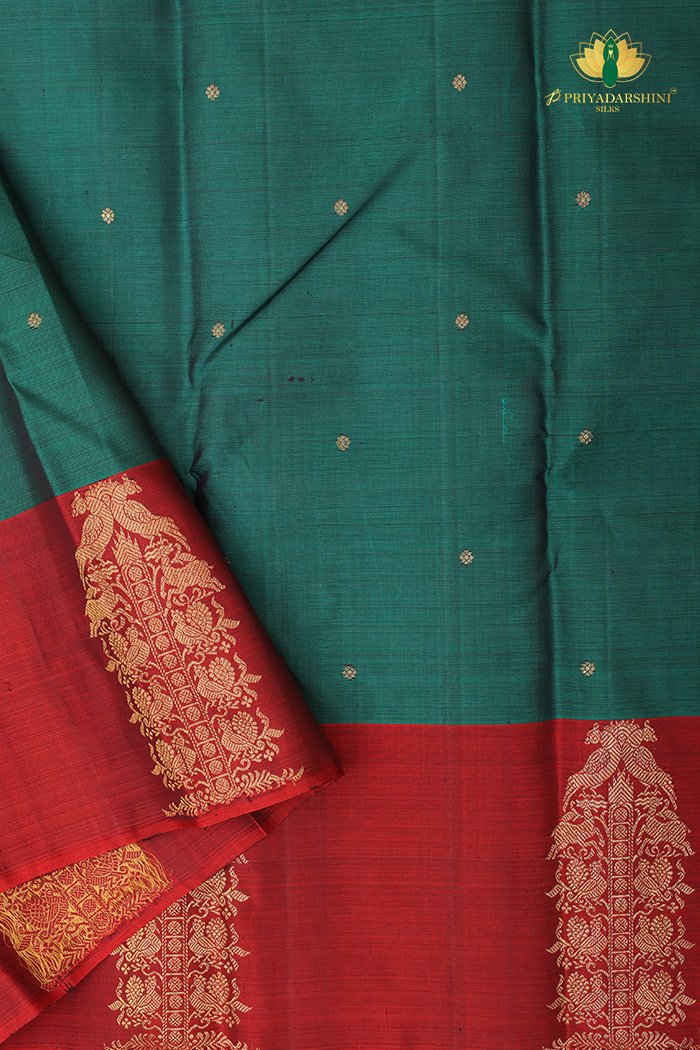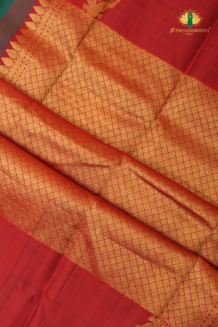 Kanchipuram Silk In Teal Green With Zari Work Border