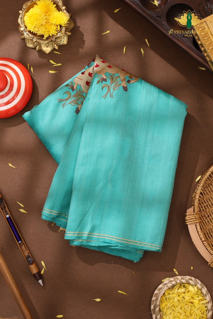 Kanchipuram Silk In Turquoise Blue With Embroidery Work