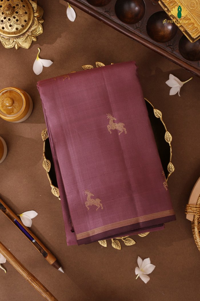 Kanchipuram Silk Pink With Beautiful Deer Design Borderless