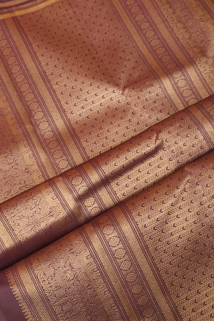 This exquisite Kanchipuram pure silk saree in a soft and elegant pink hue is beautifully decorated with delicate deer design motifs, symbolizing grace, harmony, and natural beauty. Crafted in a sophisticated borderless style, the saree offers a clean, contemporary aesthetic while preserving the richness of traditional Kanchipuram artistry.