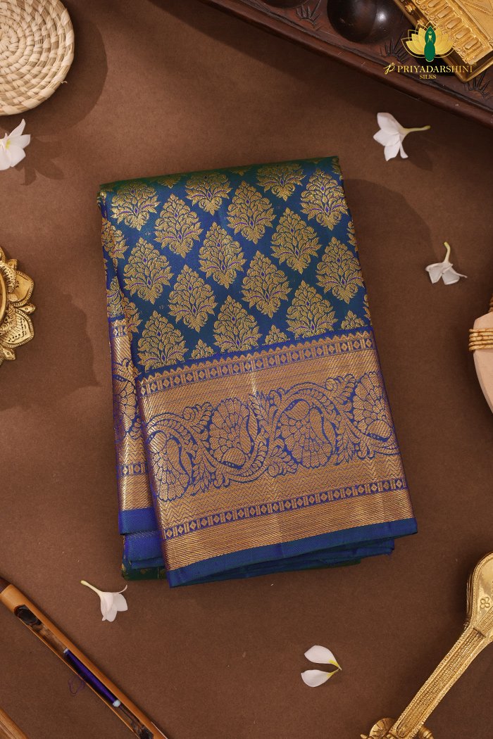 Elevate your ethnic wardrobe with this stunning Peacock Blue Kanchipuram Silk Saree, featuring rich traditional weaving, intricate zari work, and a timeless appeal perfect for weddings, festivals, and special occasions.