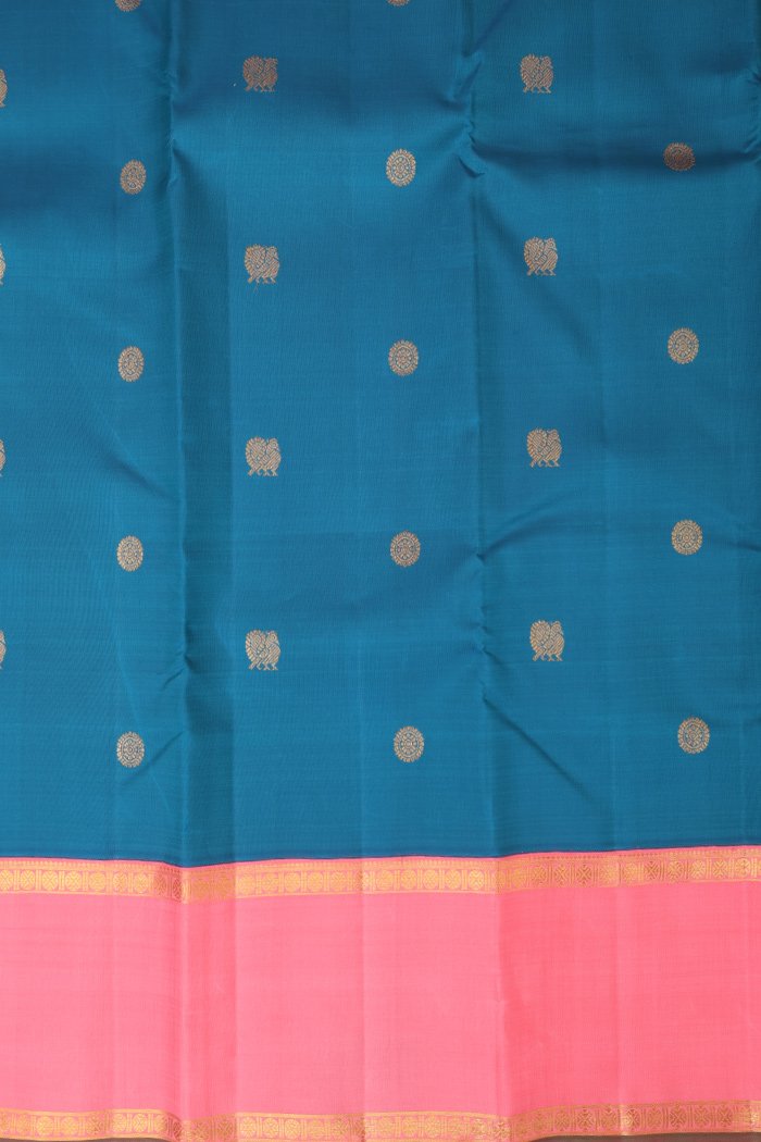 Kanchipuram Silk Teal Blue Annam chakram Butta