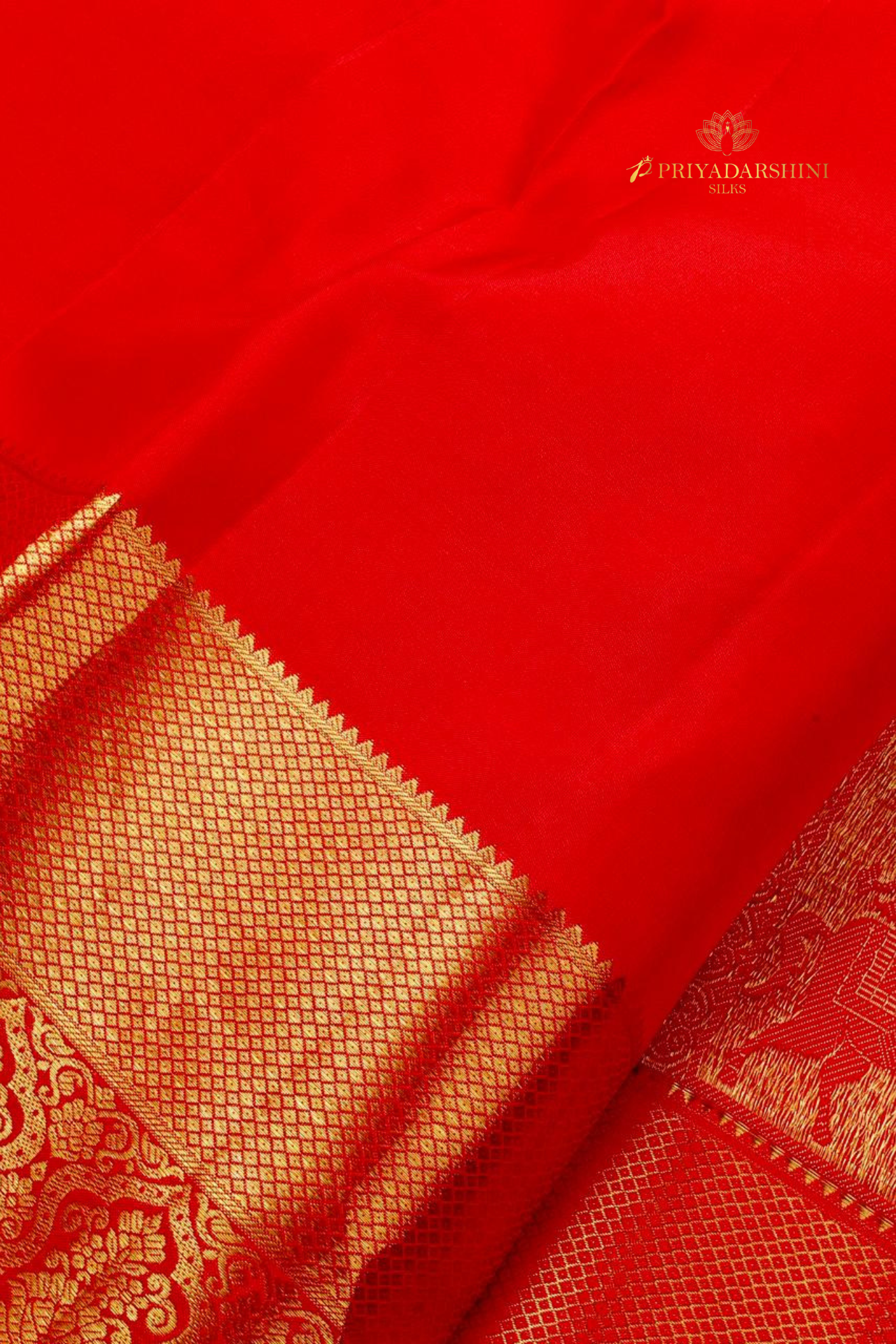 King Motif Silk Saree in Vibrant Chili Red with Ornate Pallu | Priyadharshini Silks