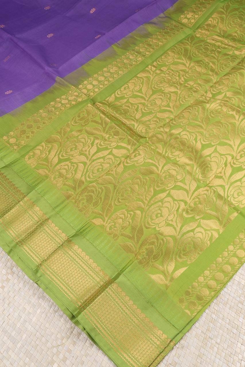 Pure Gadwal Handloom Saree – Purple with Parrot Green Korvai Border | Priyadharshini Silks
