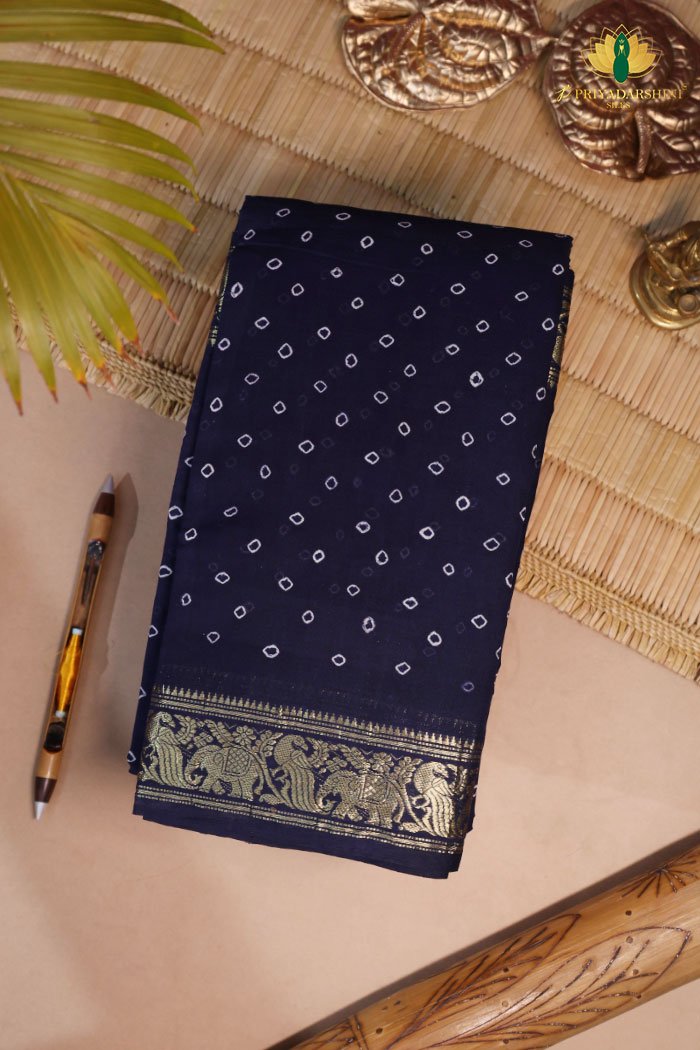 Be the first to review “Pure Handloom Sungudi Kai Mudichi Cotton with Vintage Border in Stunning Navy Blue Colour”