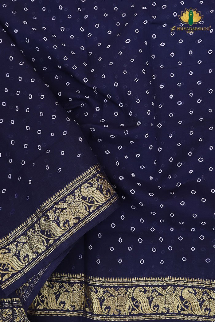 Pure Handloom Sungudi Kai Mudichi Cotton with Vintage Border in Stunning Navy Blue Colour