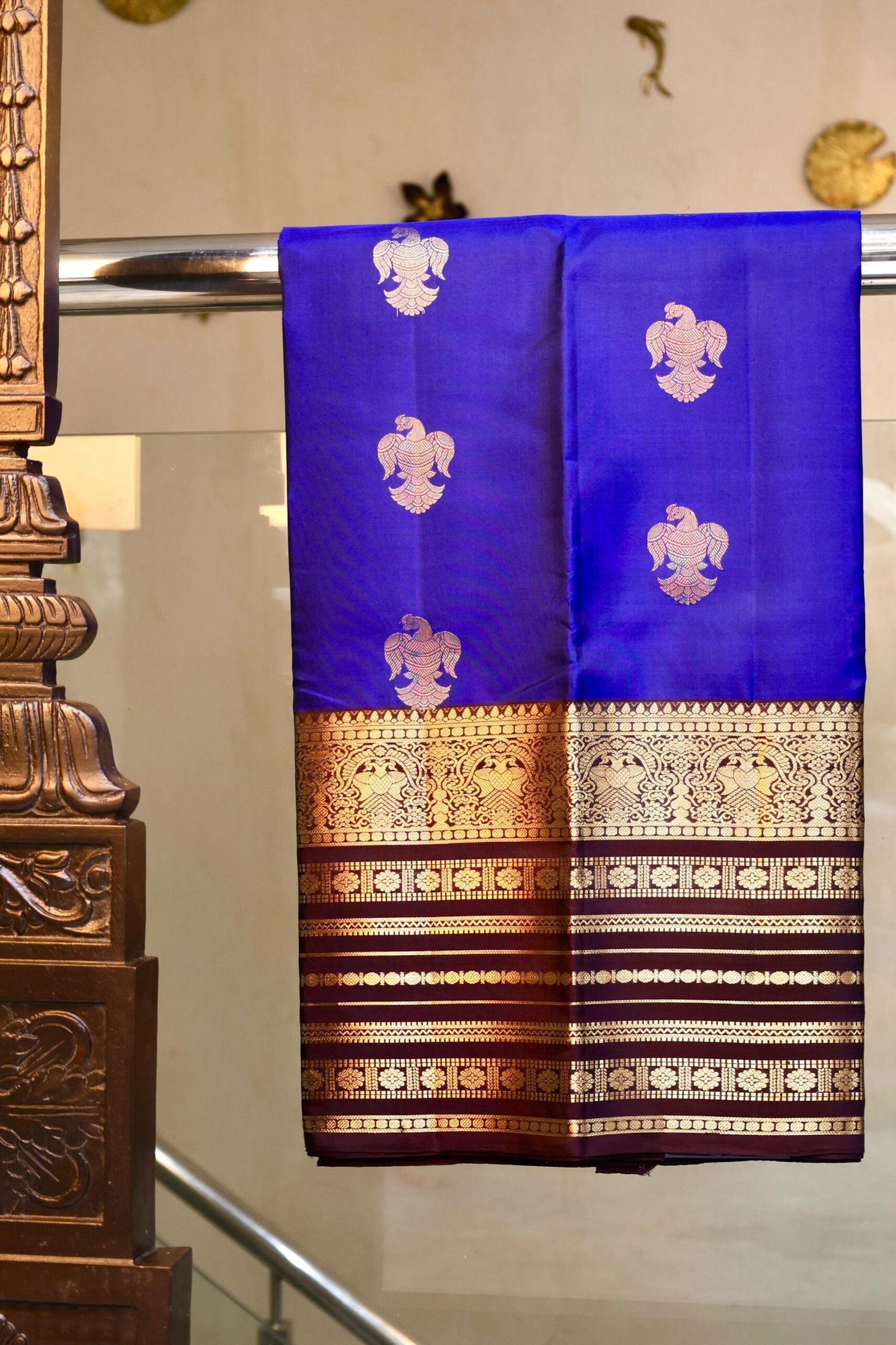 Soft Silk Saree Dark Royal Blue With Iruthalaipakshi Border