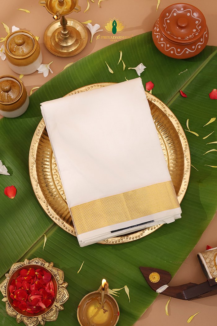 Zari border white silk dhoti with a timeless and elegant traditional look.